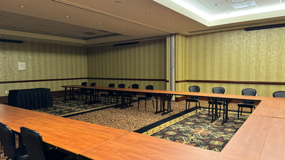 There is no room charge, rather a Food & Beverage minimum. For C, D, and E, it is $3,500 (plus tax & service, totaling 34%) and we could add Mtg Rm 1 & 2 for a total of $400 (plus tax and service), so a total of $5,226. Cash bar does count towards our F&B min.